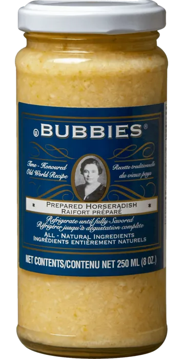 Some people love horseradish. Some don’t. If you do, isn’t it great to know that Bubbie does too. Her Prepared Horseradish contains no nonsense, just like Bubbie!