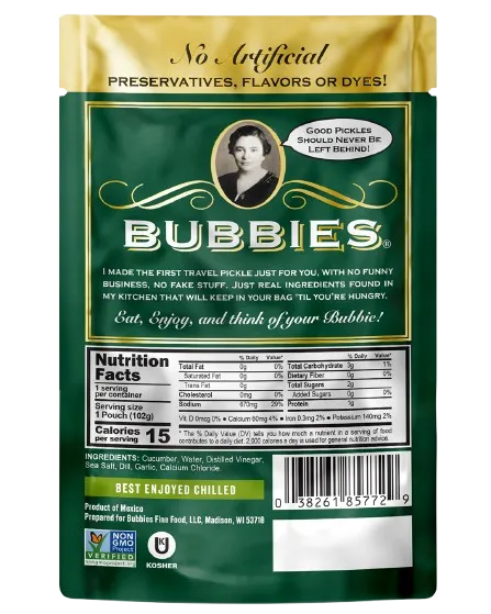 That’s the Bubbies way. Bubbies Snacking Pickles are the first of their kind - low brine, clean label, and pantry-ready. Less mess, more crunch, and always made with nothing artificial - no preservatives, no flavors, no dyes. Real pickles, ready for real life.
