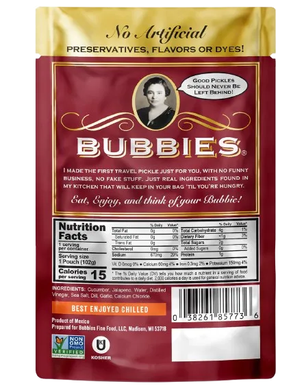 Taste the Chutzpah! Delicious dill pickles kicked up a notch with real slices of jalapeno in every pouch.
