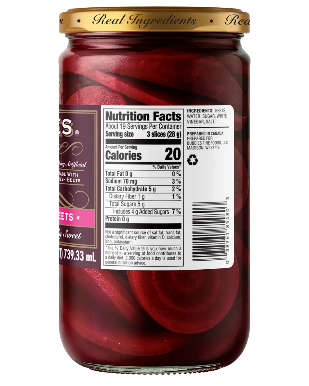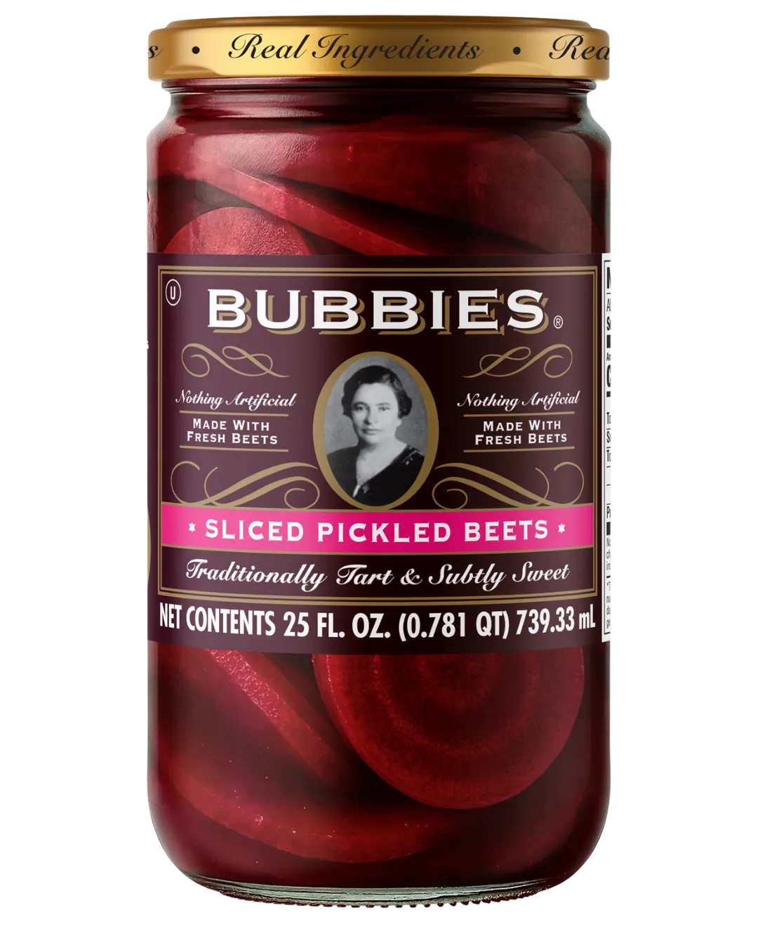 Bubbies Sliced Pickled Beets are made with fresh and beautiful beets and the simplest ingredients, never any high fructose corn syrup. Sweet, tangy and full of charm, they are lovely chilled, enjoyed right from the jar or added to your favorite salads and sides.