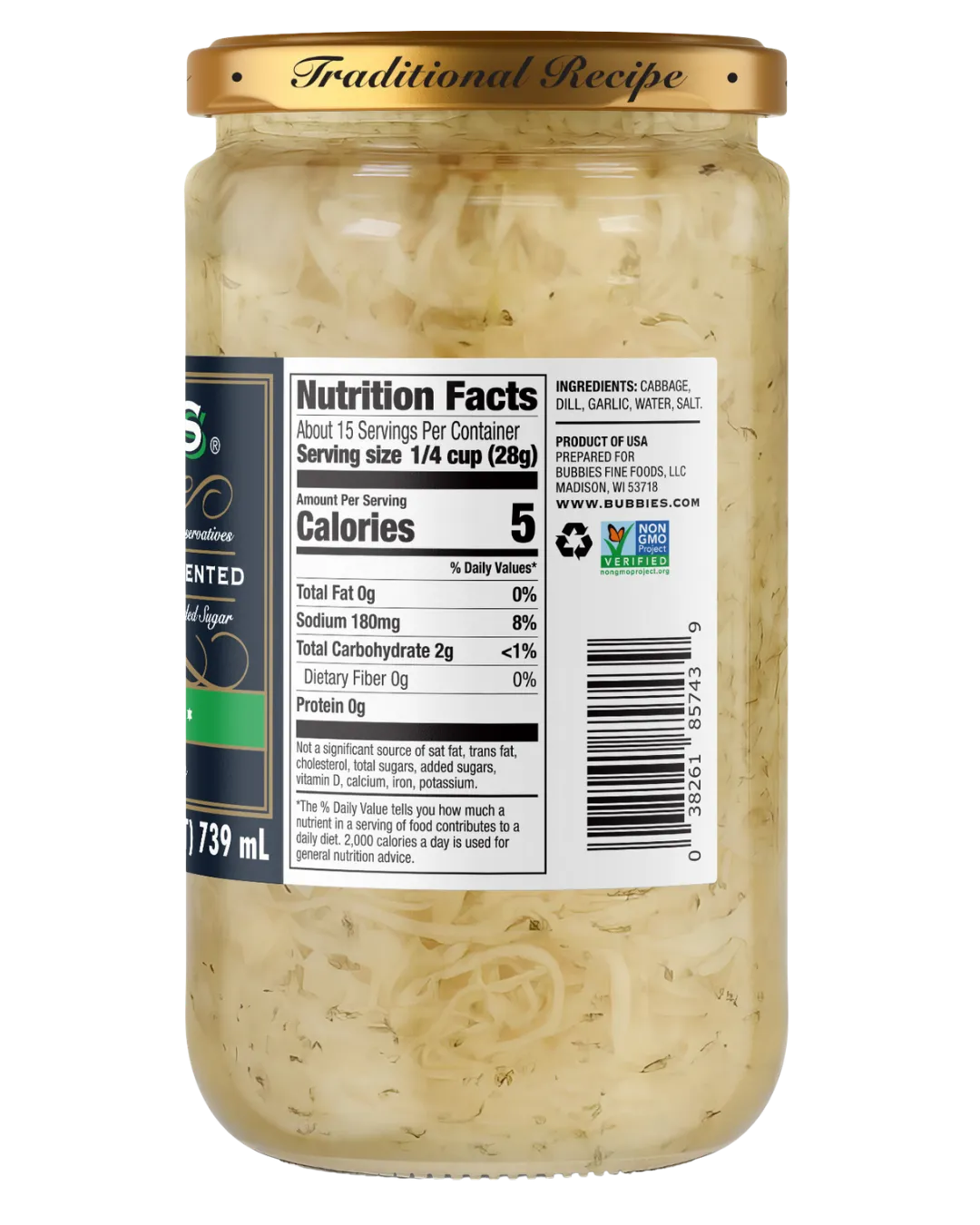 A new flavor from Bubbies Kitchen featuring Dill & Garlic mixed in to our famous sauerkraut recipe. The added flavor of Dill & Garlic adds an extra zing to the already craveable kraut!