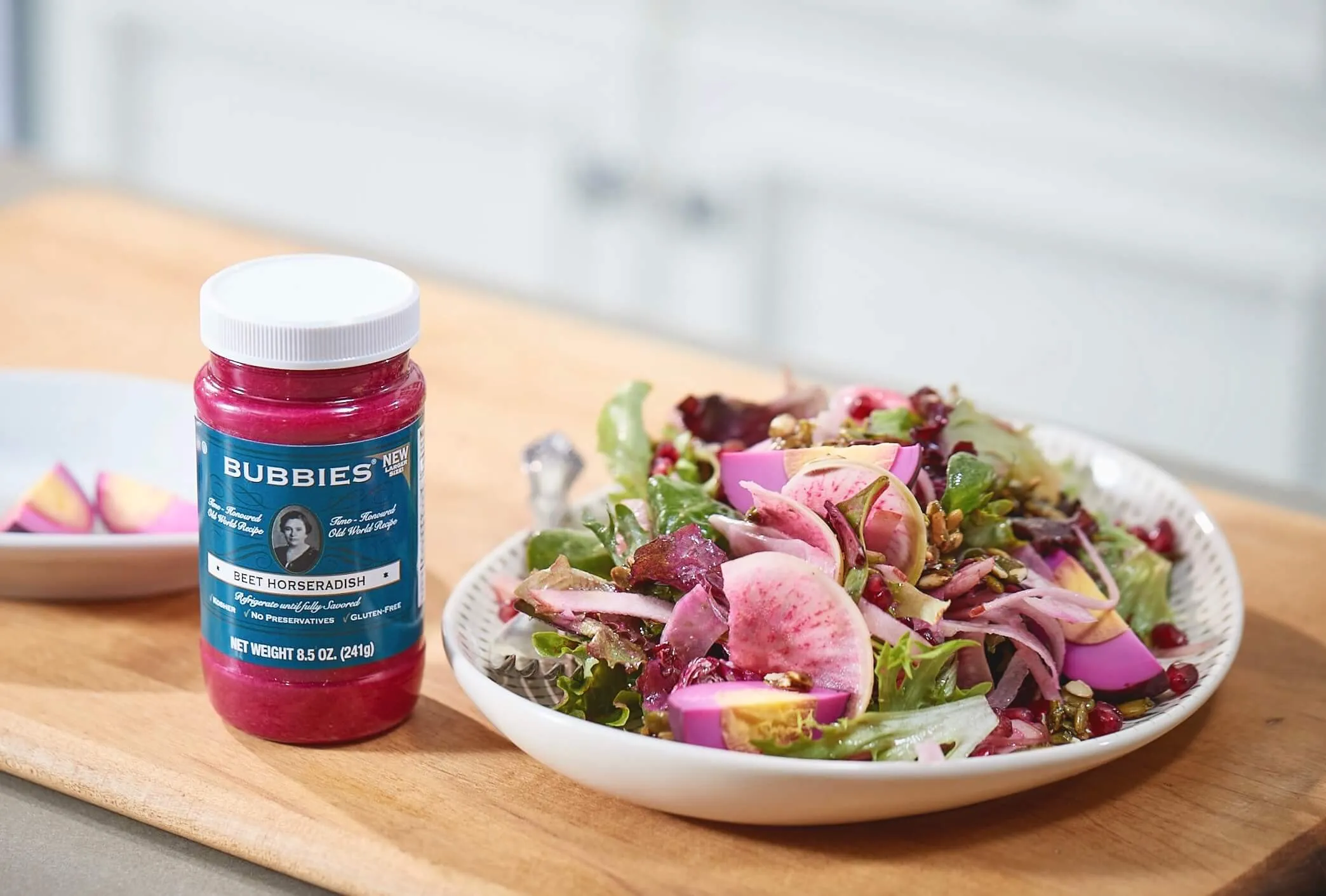 No backyard BBQ is complete without my fresh Asian noodle salad, filled with crunchy veggies, zesty citrus, and my Spicy Sauerkraut. Topped with nuts and fresh herbs, no one can resist this side dish.