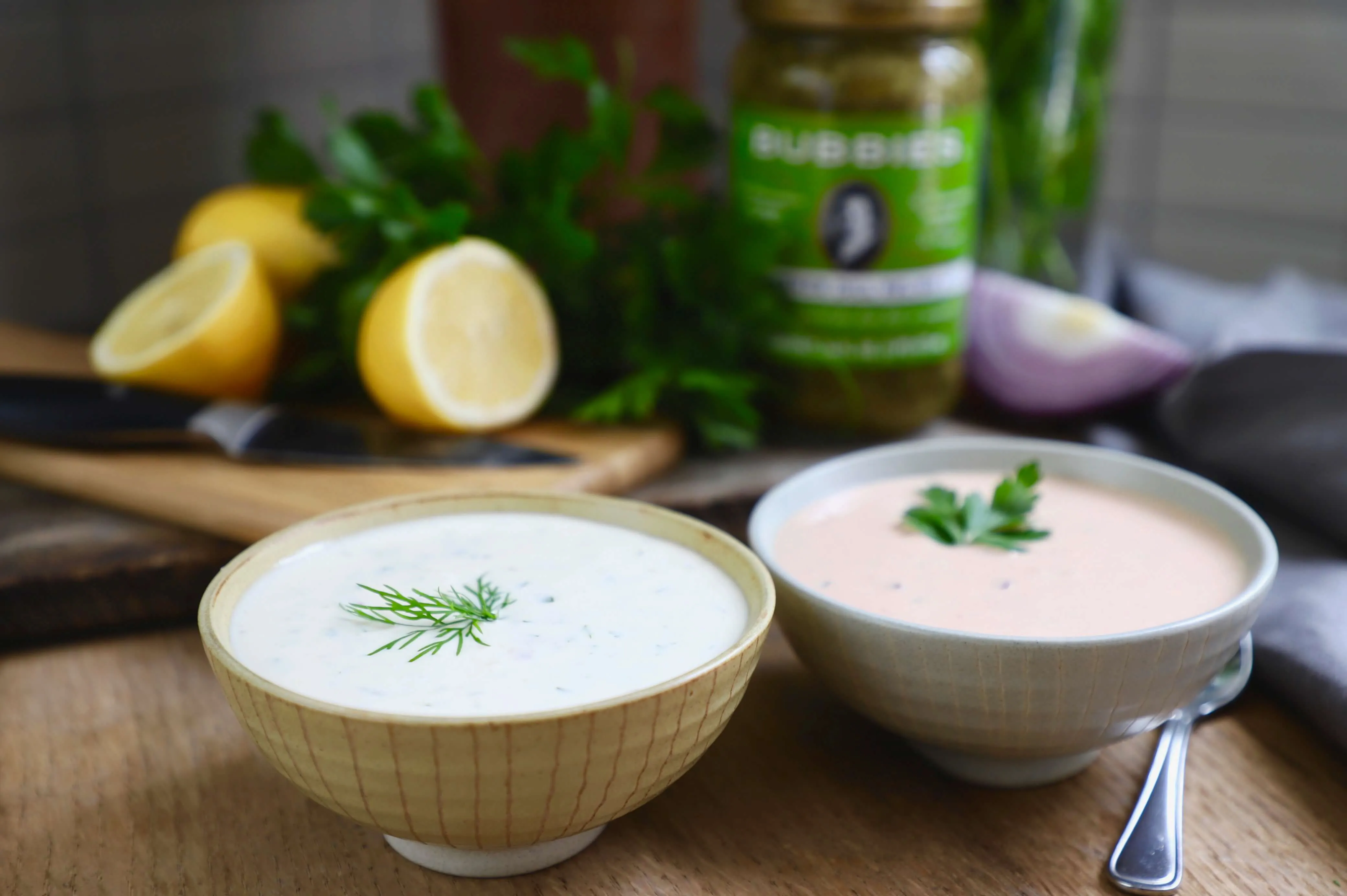 Easy, delicious, and oh-so sophisticated tuna patties with dill pickle aioli make the perfect weeknight meal. Made for Bubbies by Moriah Brooke.